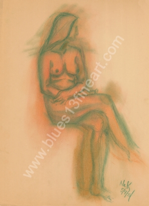 Subject: “Life Study, female nude sitting” Dimensions (inches): 17” x 23”