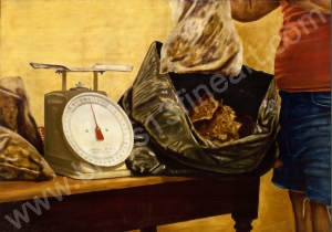 Subject: “. . . all those miracle ounces.” (1976) Dimentions (inches): 18 ½” x 28 ¾
