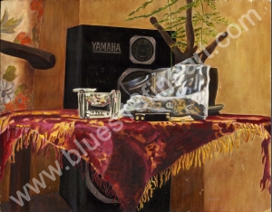 Subject: “Still life with Yamaha speakers.” (1976) Dimensions (inches): 20” x 26”